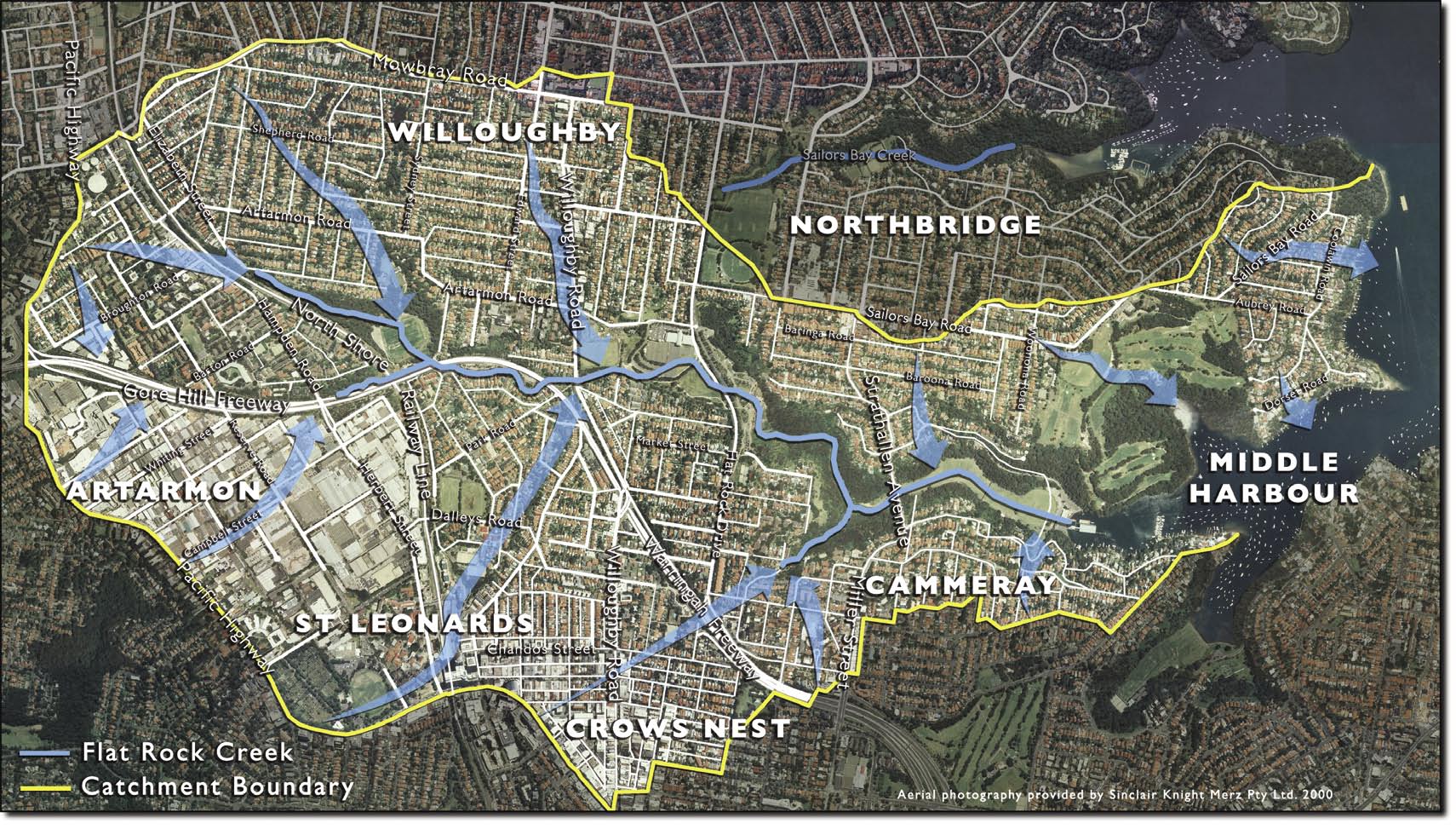 This means that the storm water from your street flows through the bush and into Flat Rock Creek and Middle Harbour.