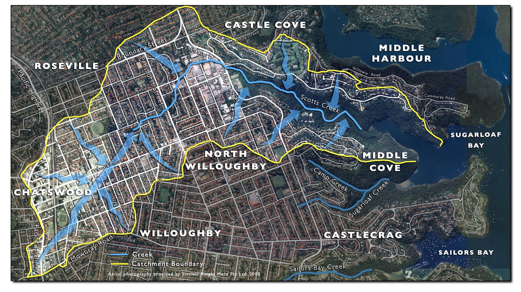 This means that the stormwater from your street flows through the bush and into Scotts Creek and Middle Harbour.